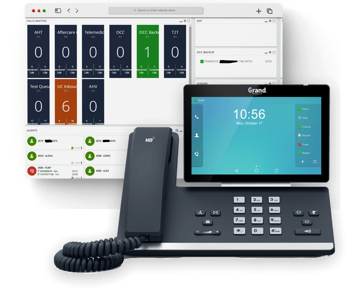 This will give you the ability to see the number of calls waiting, the listing of individual callers and to be able pull a call out of the queue. You can listen in to the agent's phone calls and a real time update of their status. VIP customers can get priority over other callers. You can give your customers the option to choose the call back feature and many other custom widgets that can be created to suit your needs. Call us now for a free demo!